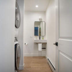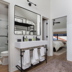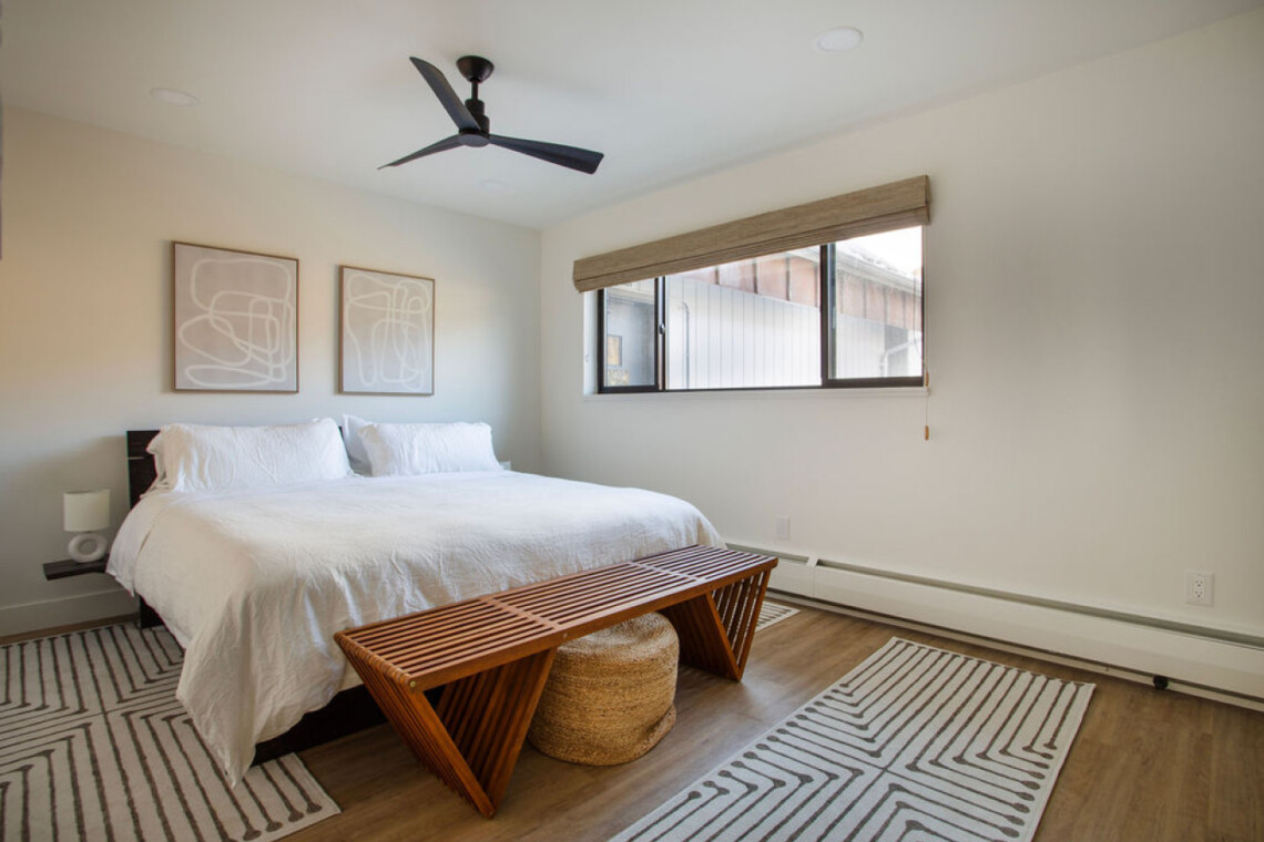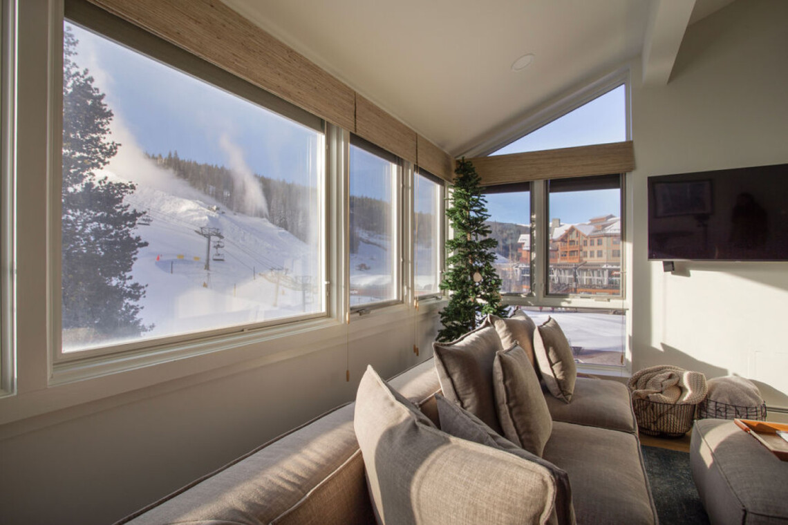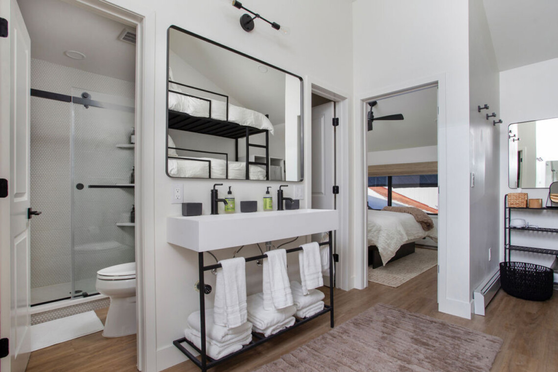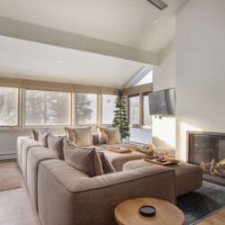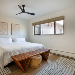 The oversized primary bedroom, custom closets, and immaculately appointed bathroom anchors the thoughtful luxury that exemplifies this perfectly designed ski condo. Primary is located on the main level, while the two rooms upstairs host their own queen bed. Between the two rooms are two bathrooms and a 6 person bunk bed in the common area for spreading out.