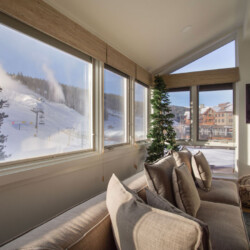 The owners of this condo wanted to think of everything. Leave your skis in the private locker room or in the ski racks outside the condo. Enter through the front door and stow your helmet, gloves, and goggles in your designated cubby, and hang your jacket in the custom-designed gear storage area. The ski-boot dryer in the utility closet dries your boots from their last use, provides nice storage, and allows you to heat them just prior to donning them the next day.