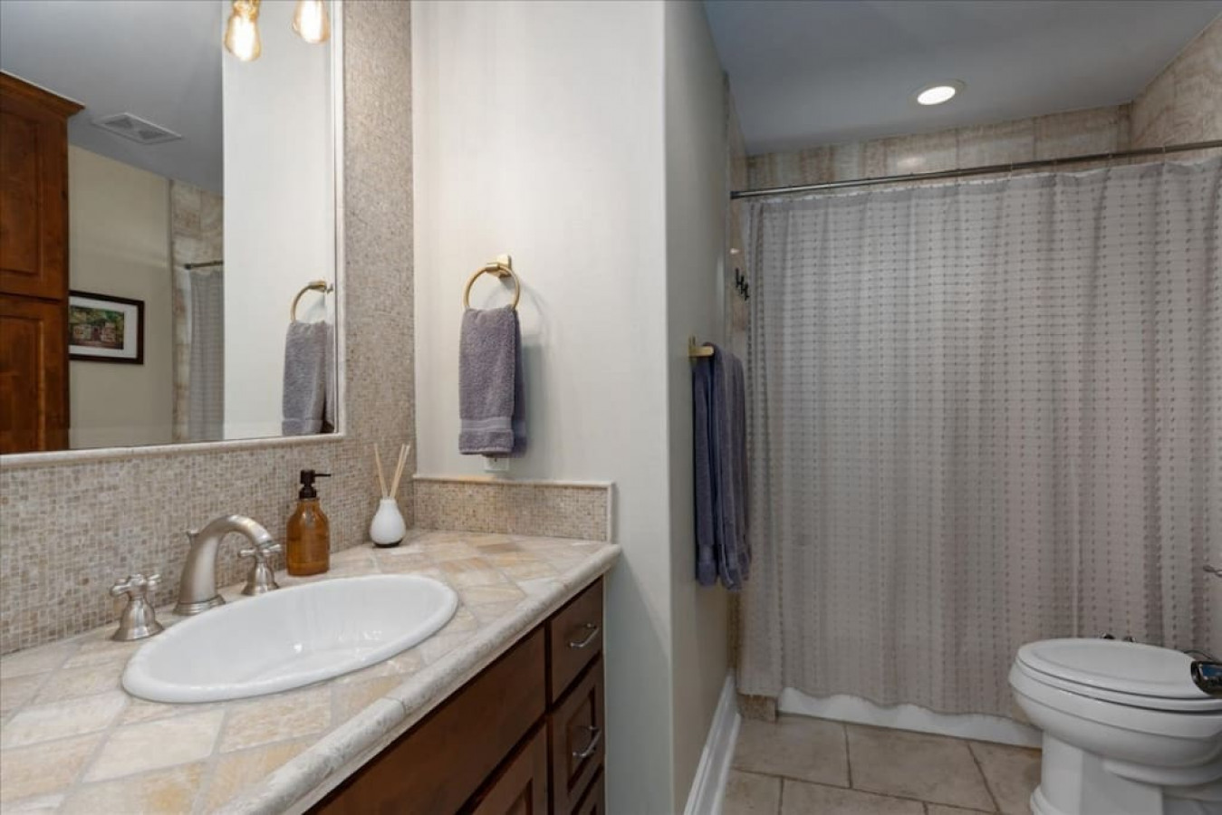 Full bathroom with bidet downstairs and three full bathroom upstairs.