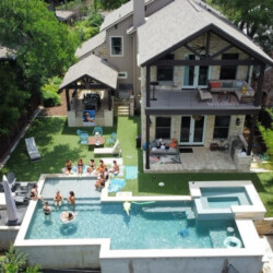 Nestled above El Alma’s famous Rooftop bar and Terry Black’s world renowned BBQ joint, the house is steps from Austin’s most popular restaurants, bars, parks, trails, and swimming holes making this home the ultimate austin living experience. Enjoy the incredible downtown skyline views from the swim-up bar in the private pool, beach, hot tub, fire pit, outdoor kitchen, dining and multiple living areas.