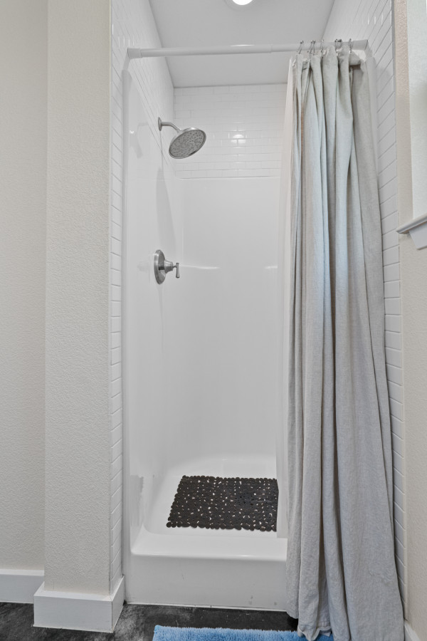 You’ll have access to the back half acre and is shared with lots of wildlife. There’s a large front yard with two hammocks and the porch includes a sitting area. Pets are welcome but need to be supervised and on a leash while outside because the fence isn’t secure around the entire property. There’s ample parking on site and the expansive driveway will accommodate several cars.