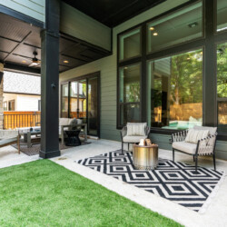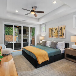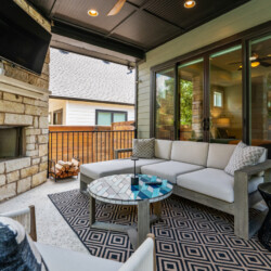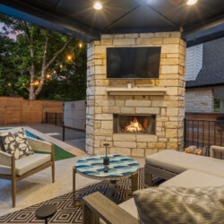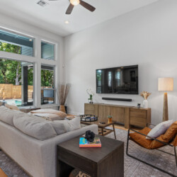 The outdoor area is a true highlight, featuring a heated pool, hot tub, and an entertainment area complete with a fire pit, gas grill, outdoor shower and outdoor TV. Whether you’re relaxing poolside, enjoying a meal outdoors, or gathering around the fire pit, the backyard is designed for comfort and enjoyment.